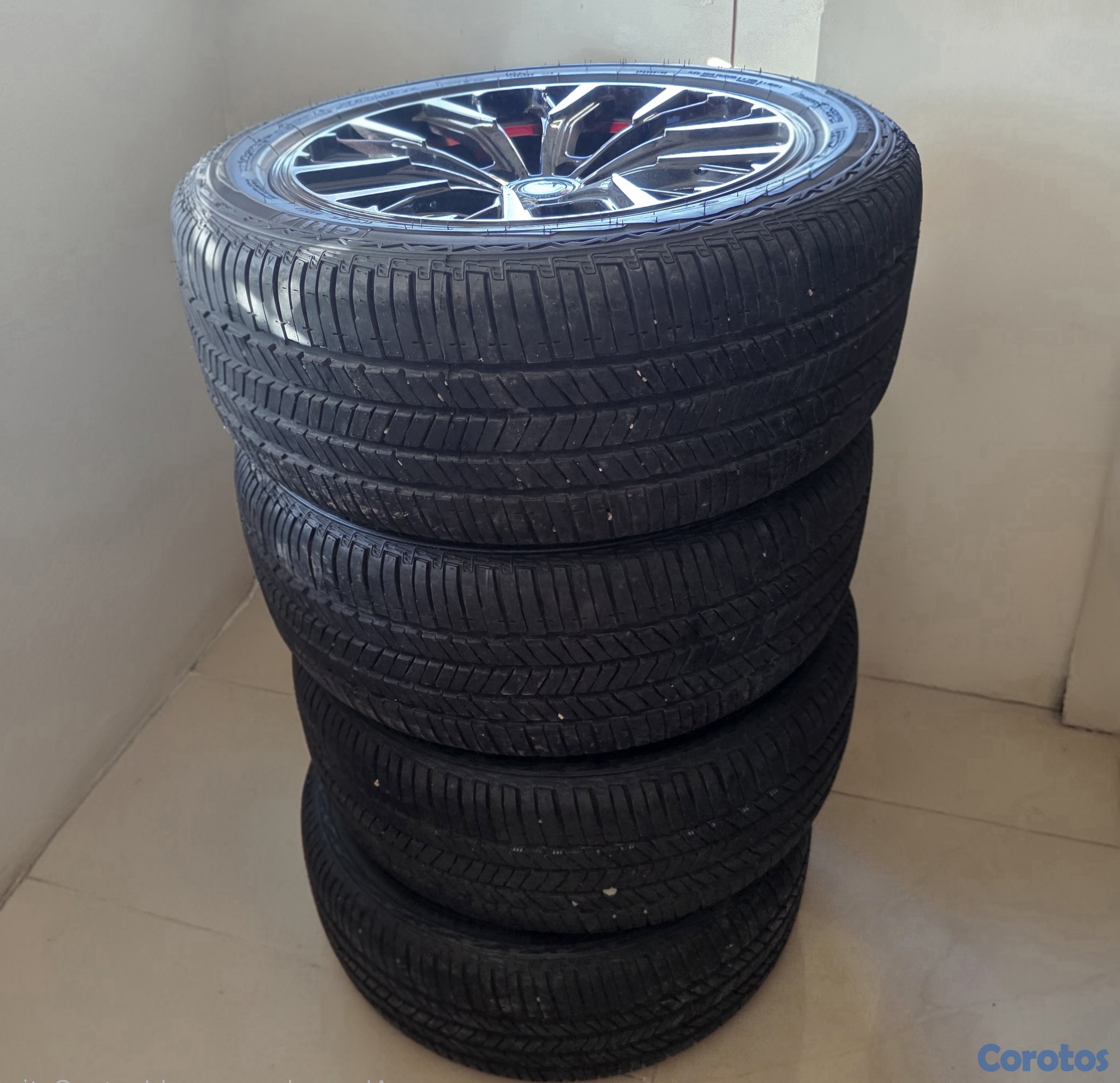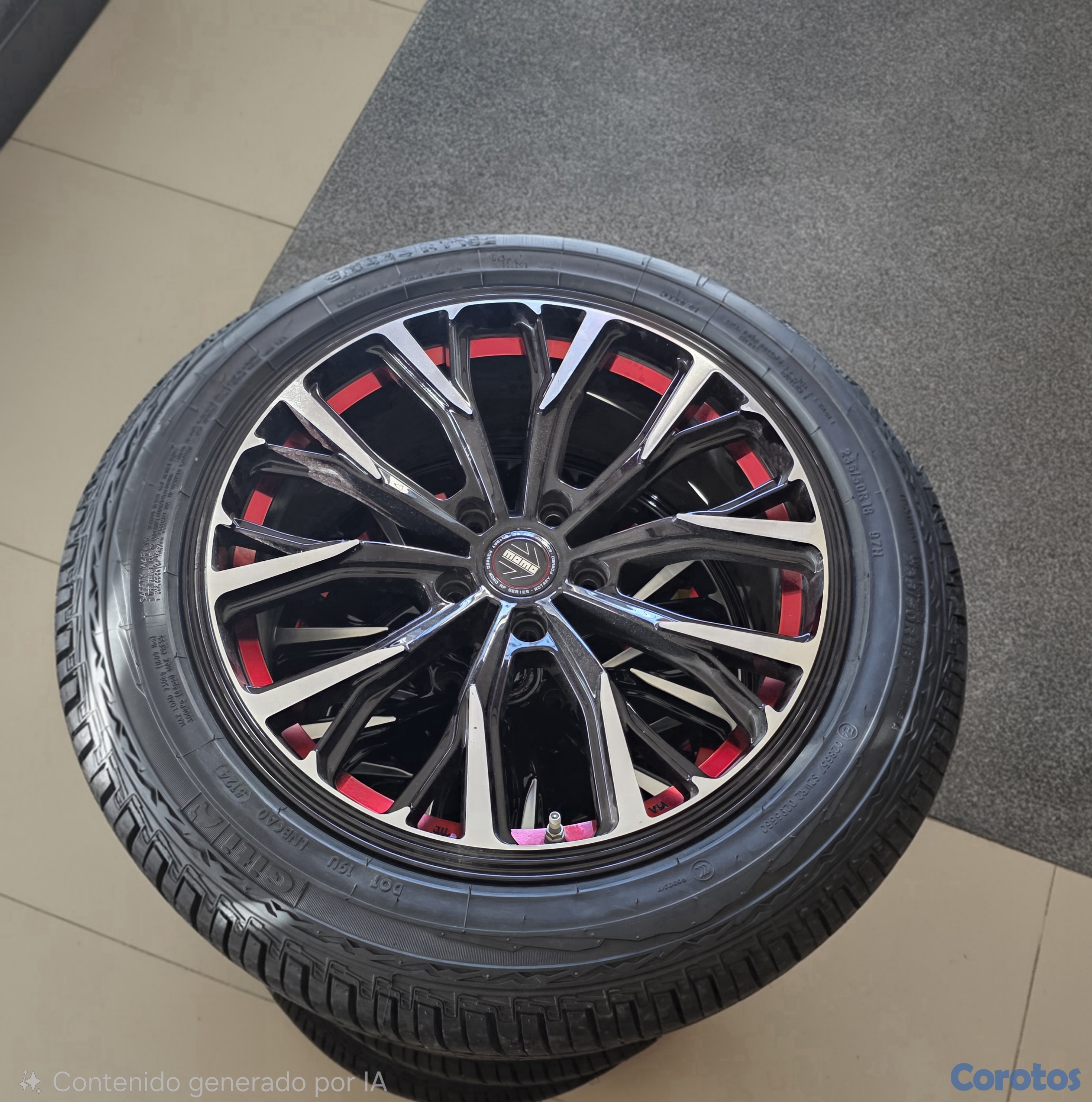 Son 4 aros momo (replicas) de 8 pulgadas de diametros, 8 pulgadas de ancho, 4 gomas Giti nuevas numero 235/50/18. Los vendo por RD$ 57,000.00, el precio original en tienda del combo es de RD$ 57,000.00.